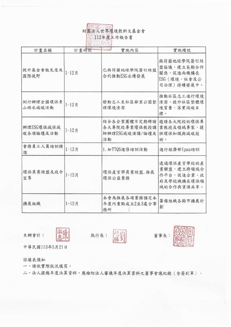 - 承辦政府和民間 生態環保節能減碳等社會公益服務之委辦或合作業務協助政府推廣環保與教育等事務